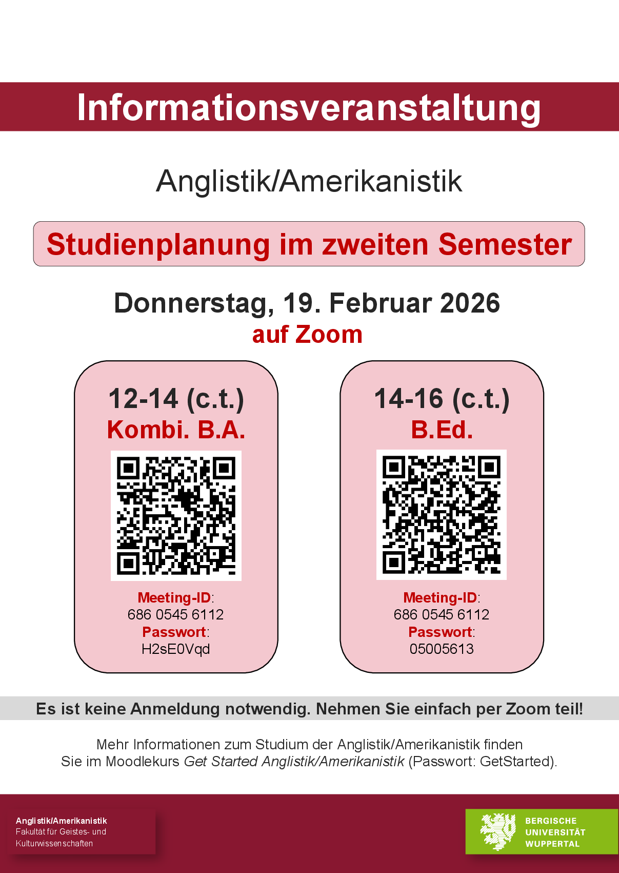 In der Infoveranstaltung zur Studienplanung im 2. Semester klären wir diese Fragen. Nehmen Sie gerne an der Veranstaltung teil, damit Sie gut vorbereitet ins Sommersemester starten! Bitte beachten Sie, den Termin wahrzunehmen, der Ihrem Studiengang (B.A. oder B.Ed.) entspricht.