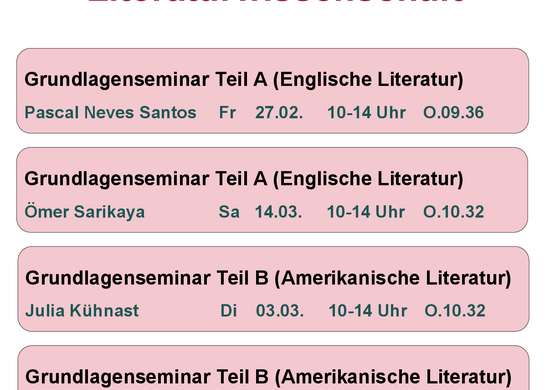 Unsere Tutor*innen bieten Repetitorien zu den Grundlagenseminaren Literaturwissenschaft Teil A und B an.