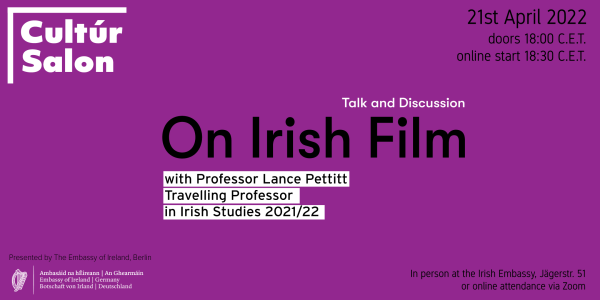 Prof Pettitt will join us for a wide-ranging discussion on Irish film, his experience of teaching Irish culture to German students, the future of Irish Studies as an academic discipline, and how educational initiatives like the Travelling Professorship can contribute to Ireland’s image abroad.